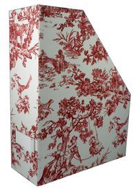 Ozdobny gazetownik wykończony tkaniną.