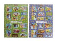 Naklejki ozdobne składają się z dwóch różnych arkuszy w formacie a5, na każdym takim arkuszu jest 16 naklejek. 2 arkusze naklejek spakowane w celofan z zawieszką w taki sposób, że naklejki są widoczne z dwóch stron.