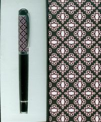 Ceramiczne pióro kulkowe, zdobione. Wkład wymienny 0,5 mm. Produkt pakowany w eleganckie pudełko, zdobione motywem z pióra.