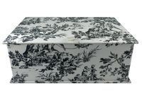 Ozdobne kartonowe pudełko na drobiazgi, wykończone tkaniną.