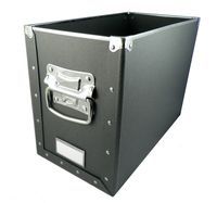 Pudło do przechowywania teczek zawieszkowych. Okucia metalowe, rączka do wysuwania, miejsce na etykietę.